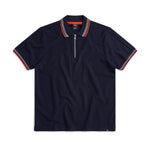Egan men's shorts sleeve zip neck pique polo - Navy